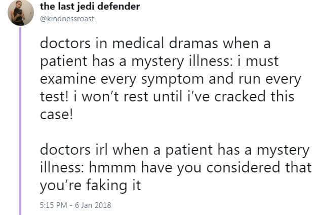 Like did a doctor say this to your face? Say that you were faking? Or were you assuming because you misinterpreted something you don’t understand?